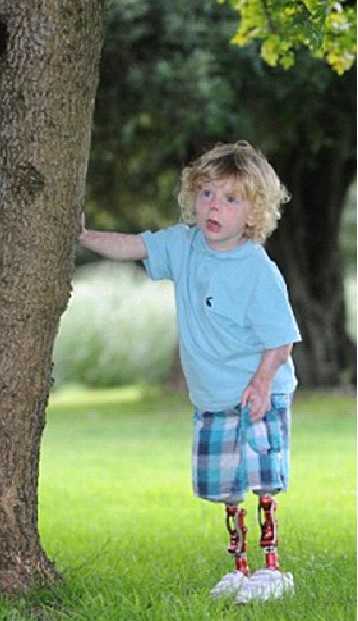 1.25萬(wàn)英鎊的仿生義肢 此產(chǎn)品為德國奧托博克3R66氣壓可旋轉四連桿膝關(guān)節 重新學(xué)會(huì )走路。 中新網(wǎng)7月29日電 英國一名3歲男童前年患上腦膜炎,要切除雙腿,最近他裝上1.25萬(wàn)英鎊的仿生義肢,并重新學(xué)會(huì )走路。 據香港文匯報消息,巴頓前年6月發(fā)燒,母親以為小問(wèn)題沒(méi)有求醫,后來(lái)病情惡化,包括皮膚出現斑點(diǎn),這時(shí)才送入醫院,但當時(shí)他的嘴唇顏色已經(jīng)變成藍色,被診斷患上腦膜炎,其后更出現敗血癥,視力永久受損。 其42歲母親表示,醫療人員最初提供的義肢是黑色的,但她說(shuō)巴頓喜歡紅色,最后裝上了紅色的義肢。他第一件事是致電哥哥去公園,然后大叫:"我們現在可以一同在公園散步了。" 父親默里表示巴頓目前每天仍要接受物理治療,隨身體長(cháng)高,他每年需要更換3次義肢。